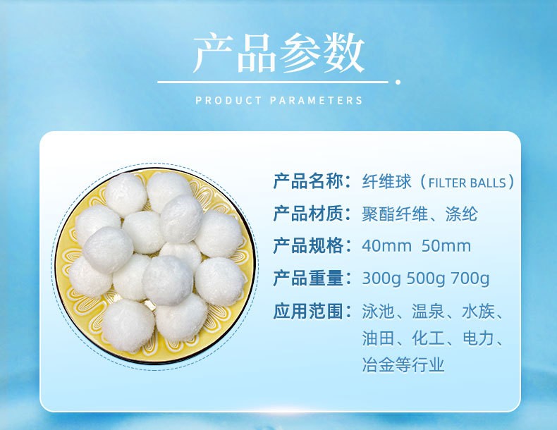 纖維球填料具有彈性效果好、濾速快、空隙大、截污容量大、工作周期長、過濾效果好、水頭損失小等優(yōu)點。適應于各種水質(zhì)的過濾和精濾。
