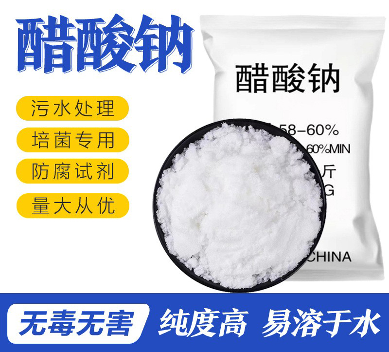 水處理用乙酸鈉 醋酸鈉 復(fù)合碳源在污水常用主要起到了調(diào)節(jié)PH值的作用,可以作為酸味劑 調(diào)味料的緩沖劑,印染中作為媒染劑,緩沖劑 化學(xué)試劑。